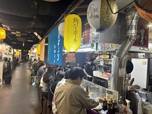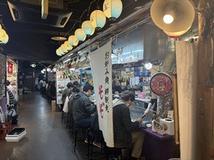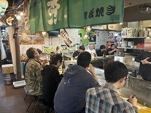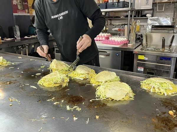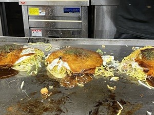 屋台のような感じでお店が並んでおり、目の前でお好み焼きを焼いてもらいました。