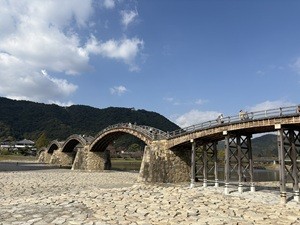 昼食後はバスに乗り、日本三名橋のひとつである錦帯橋へ行きます。