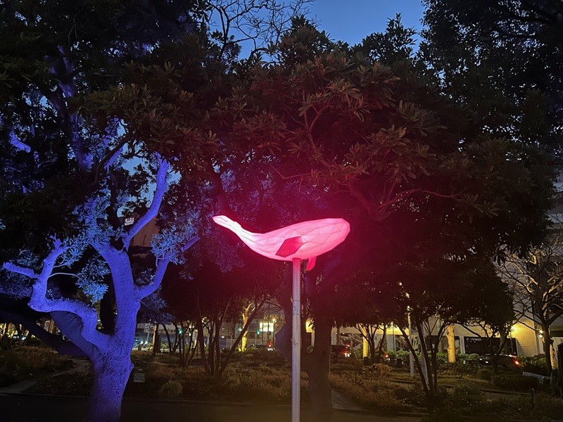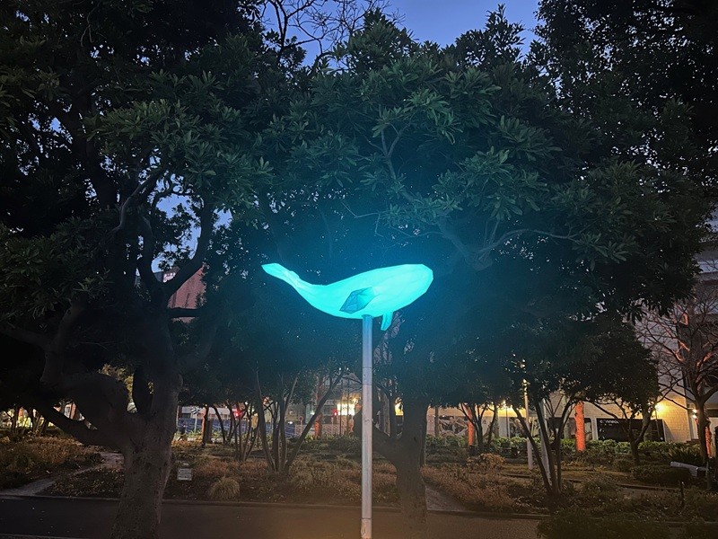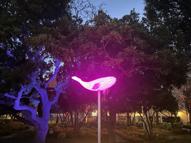 山下公園内のクジラオブジェの前で点灯時刻を待ちます。