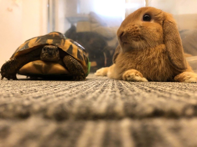 亀はウサギが嫌いみたいでたまに平手打ちを繰り出してます。